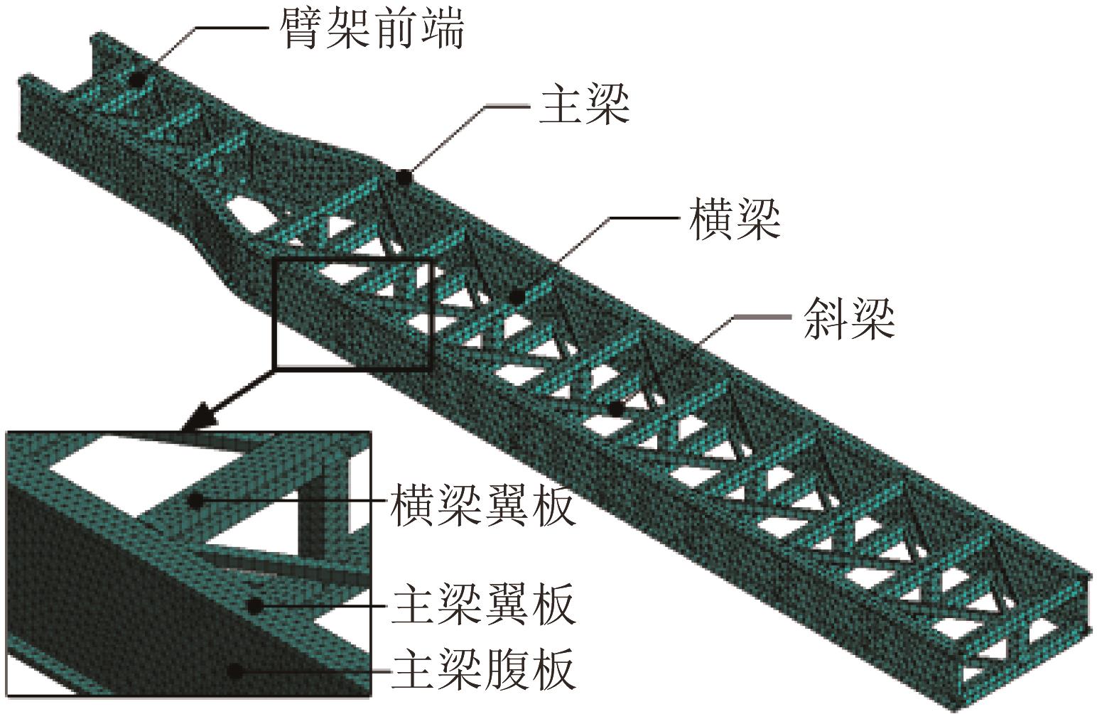 | Fig.7 Finite element model of front boom structure of tower crane |
