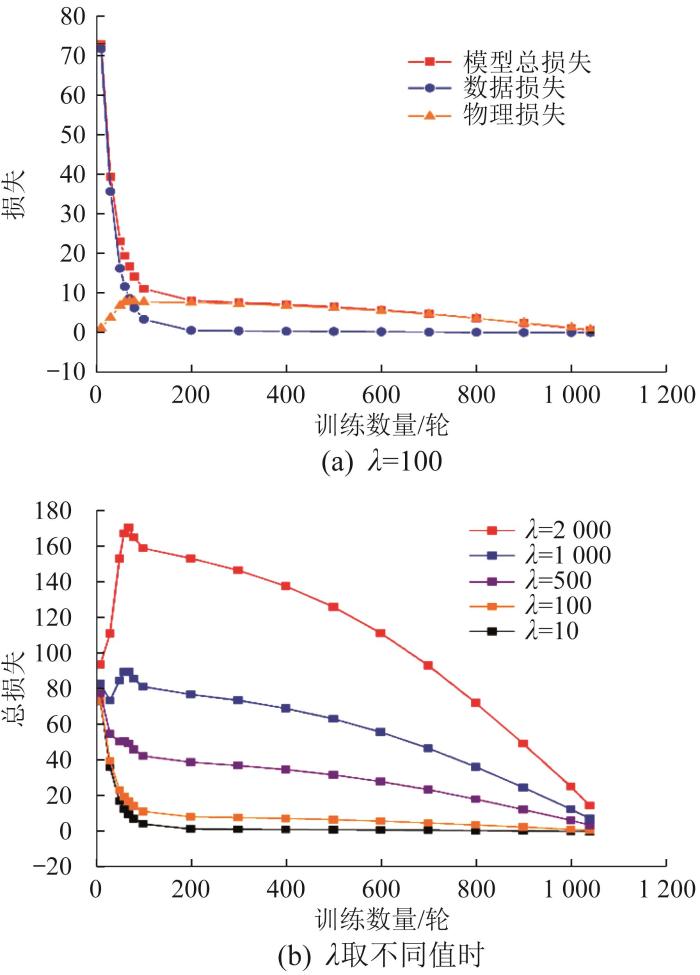 在PINN的物理项损失项L p θ 中,通过引入惩罚因子λ 来保持数据拟合与物理约束之间的一致性,可表示为: