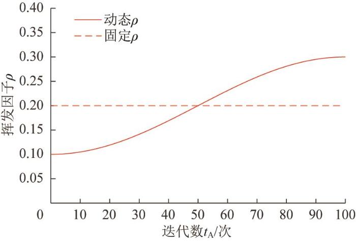... 在传统的ACO中,挥发因子通常设定为固定值.然而,固定的挥发因子无法适应搜索过程中不同阶段的需求:在初期需要较少的路径方向,以加快收敛速度;在后期需要增强全局搜索能力,以避免陷入局部最优.因此,本文提出了一种动态的挥发因子调整策略,并推导了随迭代次数动态变化的挥发因子计算公式,以更好地平衡局部搜索与全局搜索.在挥发因子的设定上,参考文献[25 ]中的方法.文献[25 ]指出:较小的挥发因子能够提高收敛速度,并使蚂蚁在早期搜索阶段具有较强的方向性,从而避免随机性的影响;较大的挥发因子能够增强全局搜索能力,防止陷入局部最优解.动态挥发因子的计算式如下: ...