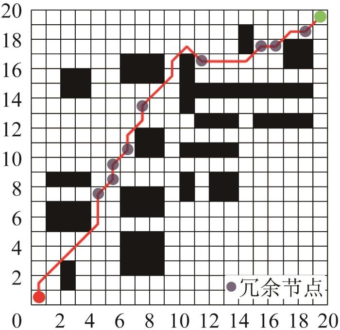 如图7 所示,在应用删除算法之前,路径中包含较多冗余节点;在经删除算法处理后,冗余节点显著减少,如图8 所示。由此可知,所提出的删除算法能够有效减少无效路径的数量,降低计算复杂度,并优化路径规划过程中的资源分配和时间成本。