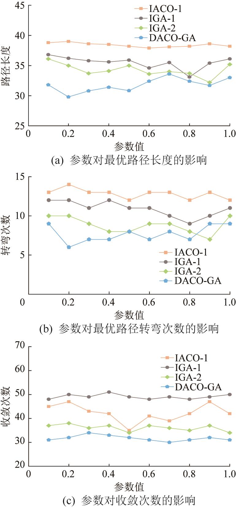 | Fig.11 Influence of DACO-GA parameters on path planning performance |