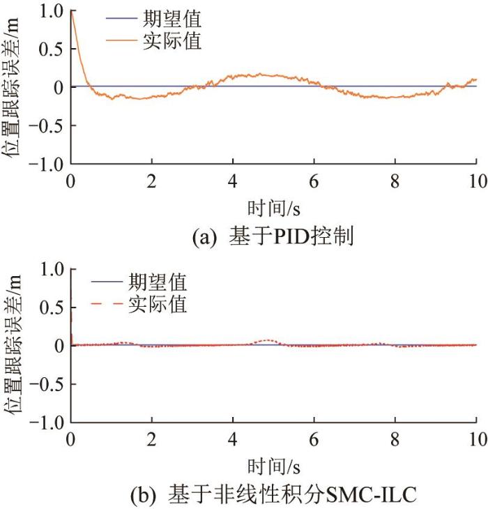 式(24)与式(25)定义了二阶连续的SMC-ILC控制律,其中S k i / 3 s g n S k (i = 1 , 2 )为连续函数,S k 1 / 3 s g n S k 被积分后,使得V k t 成为一个连续的函数。综上,所设计控制器的输入为连续信号,可实现无抖振的控制动作。