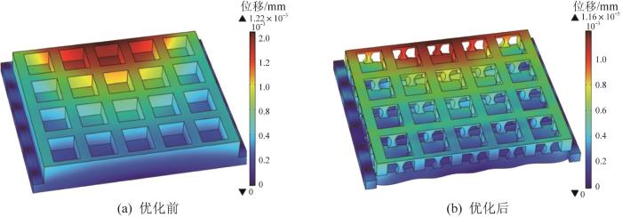 优化前后基板结构的位移分布云图