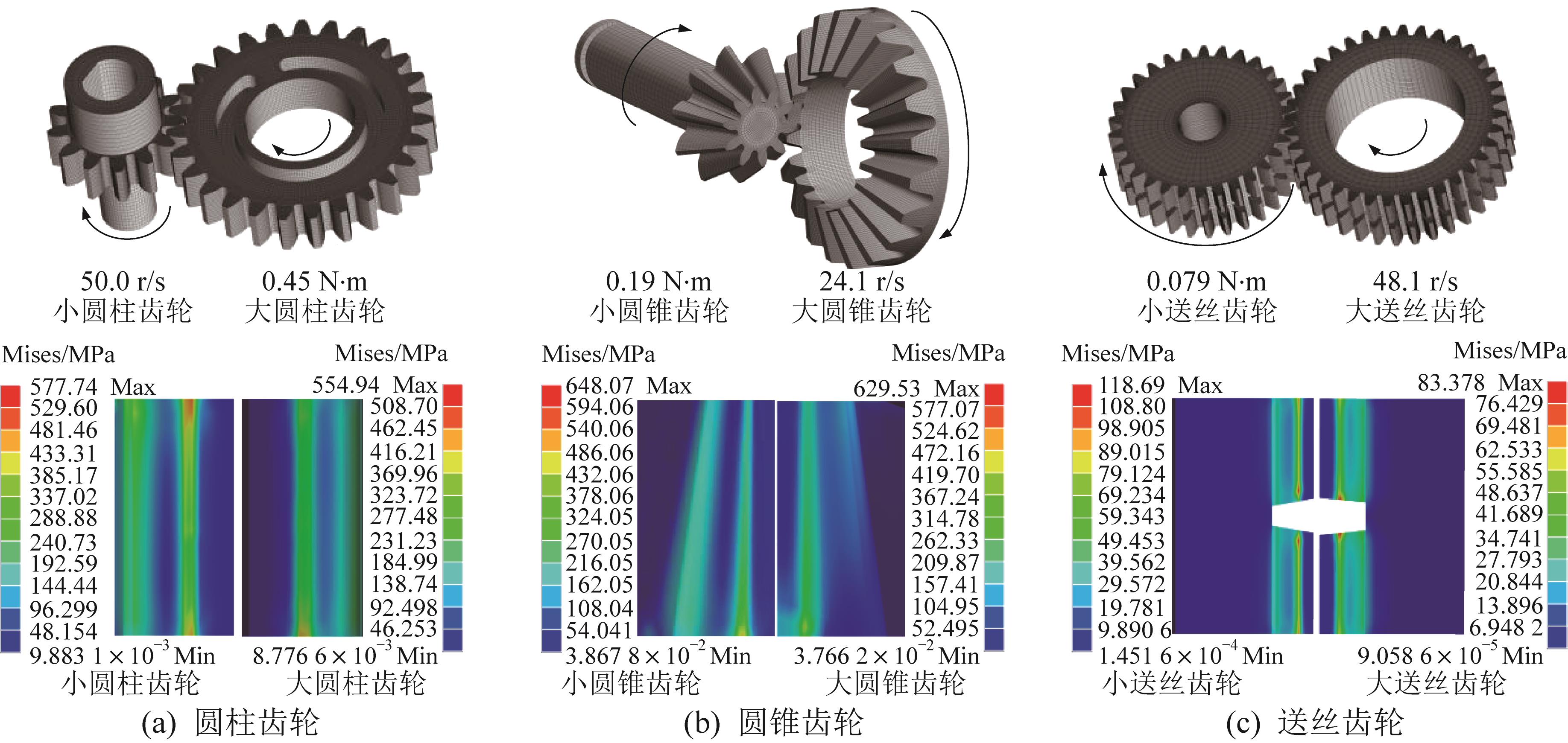 | Fig.15 Meshing stress cloud maps of gears in binding mechanism |