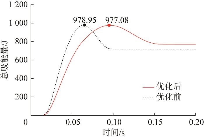 优化前后防撞装置的总吸能量曲线对比