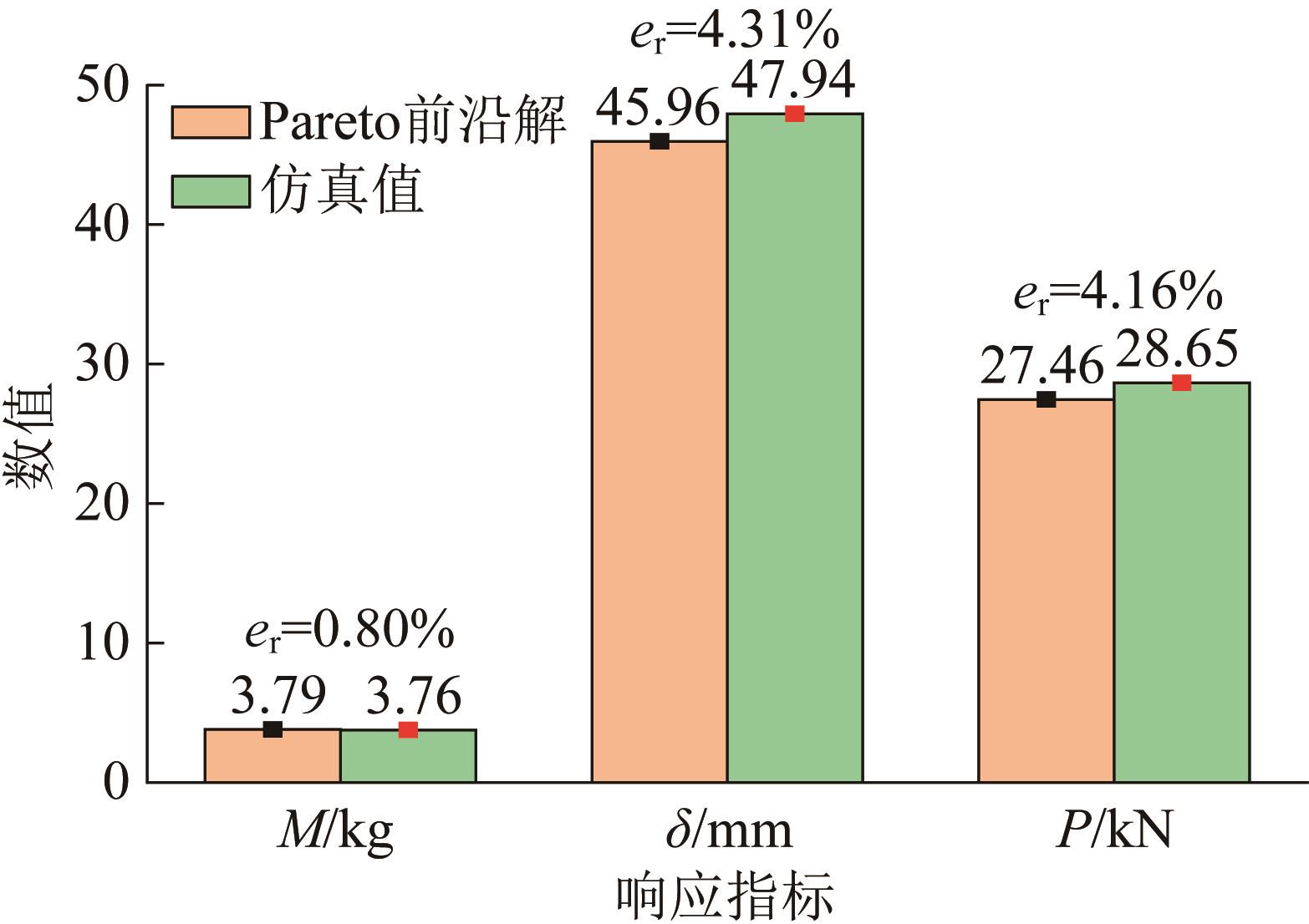 | 图11 响应指标的Pareto前沿解与仿真结果对比 |