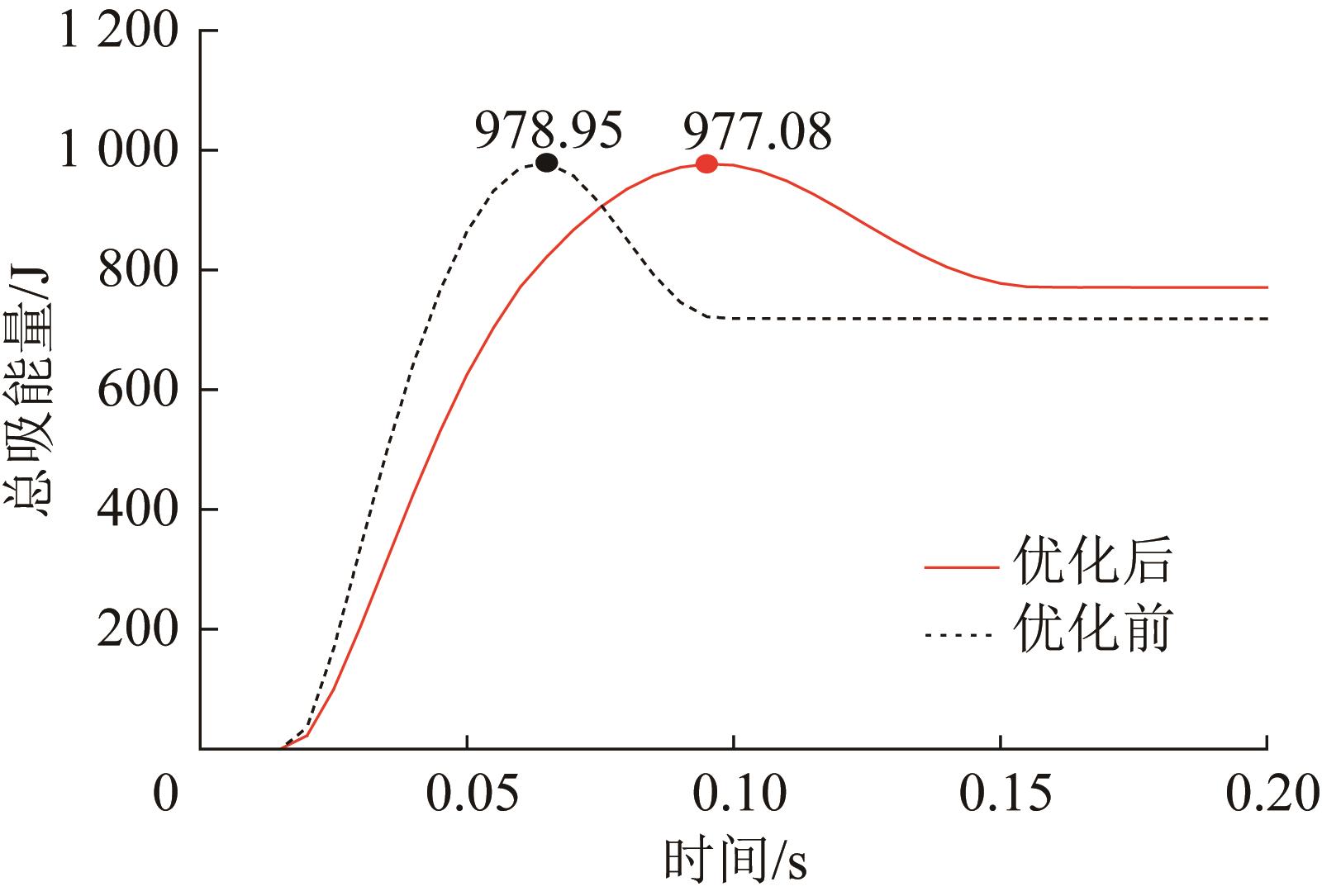 | 图12 优化前后防撞装置的总吸能量曲线对比 |