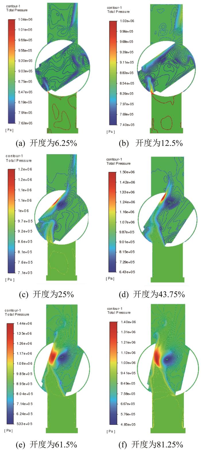 不同阀芯开度下的流道压力分布云图