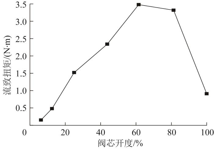 不同阀芯开度下的流致扭矩