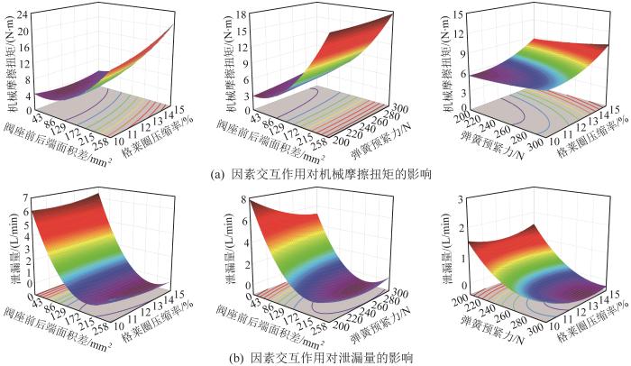 ... 为分析机械摩擦扭矩与泄漏量响应面回归模型的显著性,对其进行方差分析,结果分别如表3 和表4 所示.表中:F 值用于衡量回归模型及各因素对响应目标影响的显著性,F 值越大,表示模型或因素的影响越显著[27 ] ;P 值表示不拒绝原假设的程度,P< 0.05,说明模型或因素具有统计显著性. ...