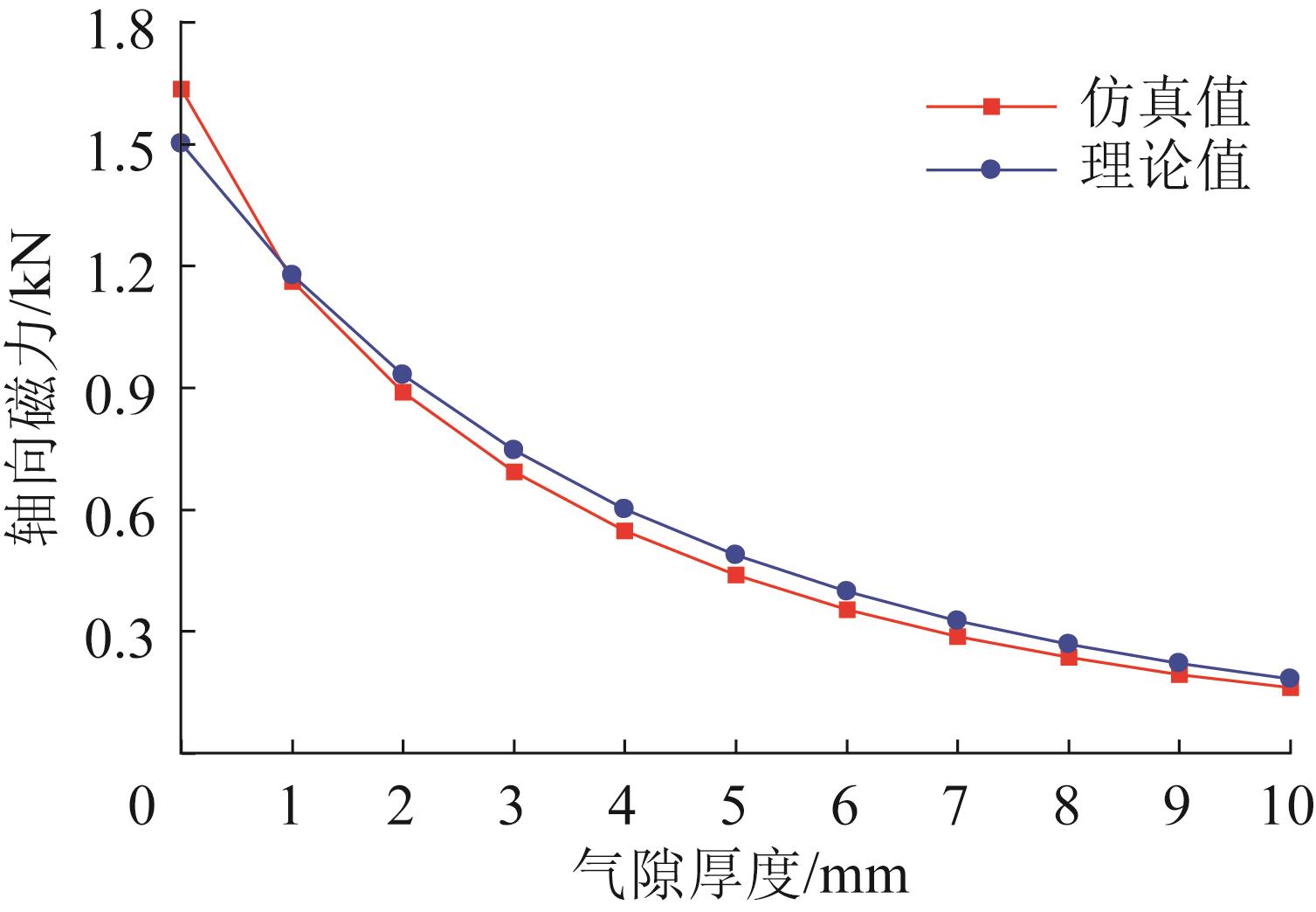 | 图6 轴向磁力—气隙厚度曲线对比 |
