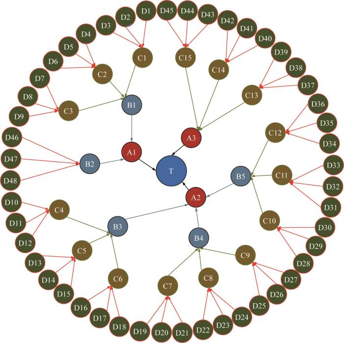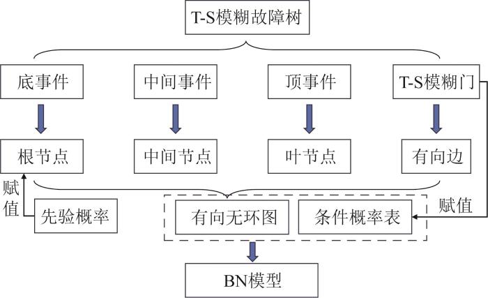 在安全评估方面,He等[10]提出了基于SAT(scenario analysis theory,情景分析理论)与改进BN算法的安全评估模型,通过构建事故情景要素、运用改进BN对影响因素及其相互作用进行建模和设计安全评估函数,实现了对起重机事故安全的定量分析。Chen等[11]搭建了桥式起重机安全评估指标体系,借助聚类分析修正专家权重分配以优化评估的合理性,并构建了基于模糊隶属函数与模糊神经网络的安全评估模型。Li等[12]提出了一种基于Z-SPA(Z-number and set pair analysis,Z数与集对分析)的起重机作业风险评估模型,该模型采用等级判别规则和得分函数来确定起重机作业风险等级。吴峰崎等[13]运用云模型与组合赋权,生成了高可信度且兼顾主客观评估的综合权重,由此确定了桥式起重机金属结构的安全等级。Zhong等[14]提出了塔式起重机作业风险评估框架,通过构建基于BN的风险评估网络,实现了起重机作业风险的有效识别与动态评估。上述研究显著推进了起重机安全、风险评估的量化水平,但在处理复杂系统多层次失效逻辑、融合多种不确定性信息以及提高模型普适性与计算效率方面仍有提升空间。