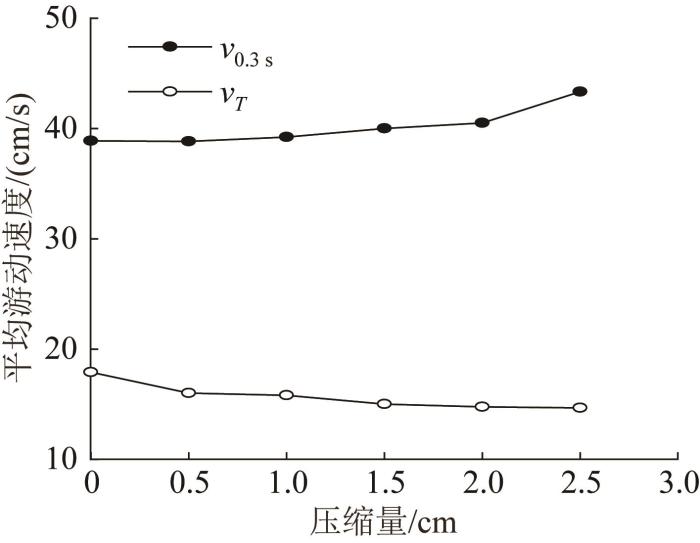 平均游动速度与弹簧压缩量的关系
