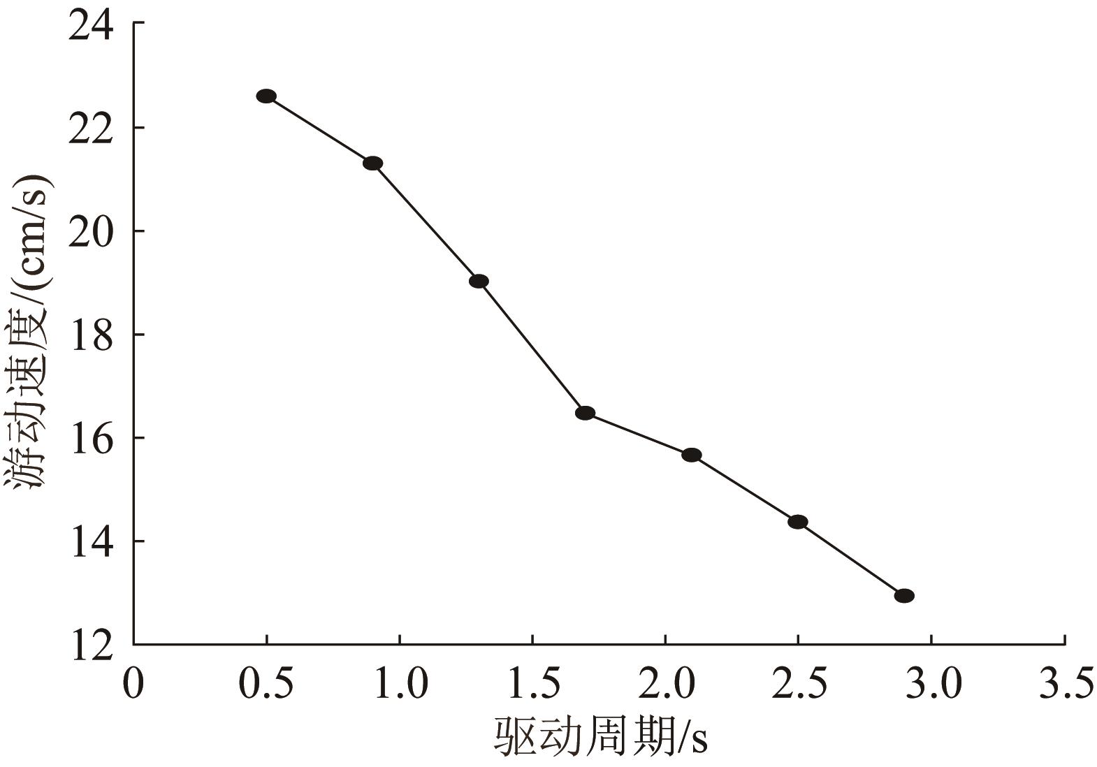 | Fig.22 Relationship between average swimming speed and actuation cycle |
