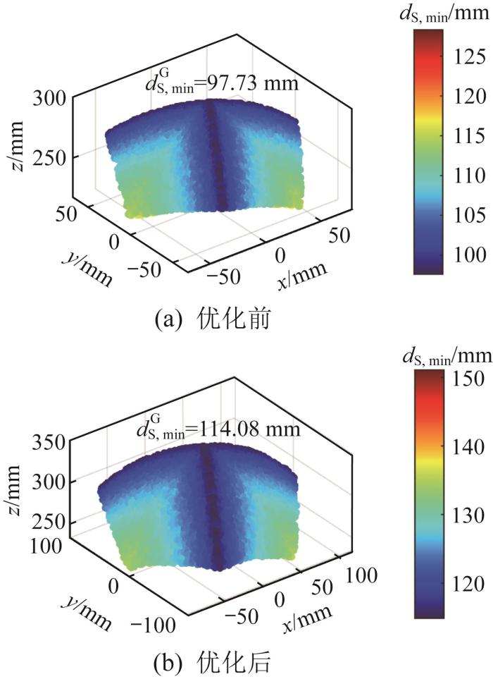 式中: R z φ 表示绕z 轴的旋转矩阵, R w φ 表示绕动平台w 轴的旋转矩阵。因r 2 , i n 、r 3 , i n 为构成S关节的2个R关节的位置向量,则有r 2 , i n = r 3 , i n = r 4 , i n 。