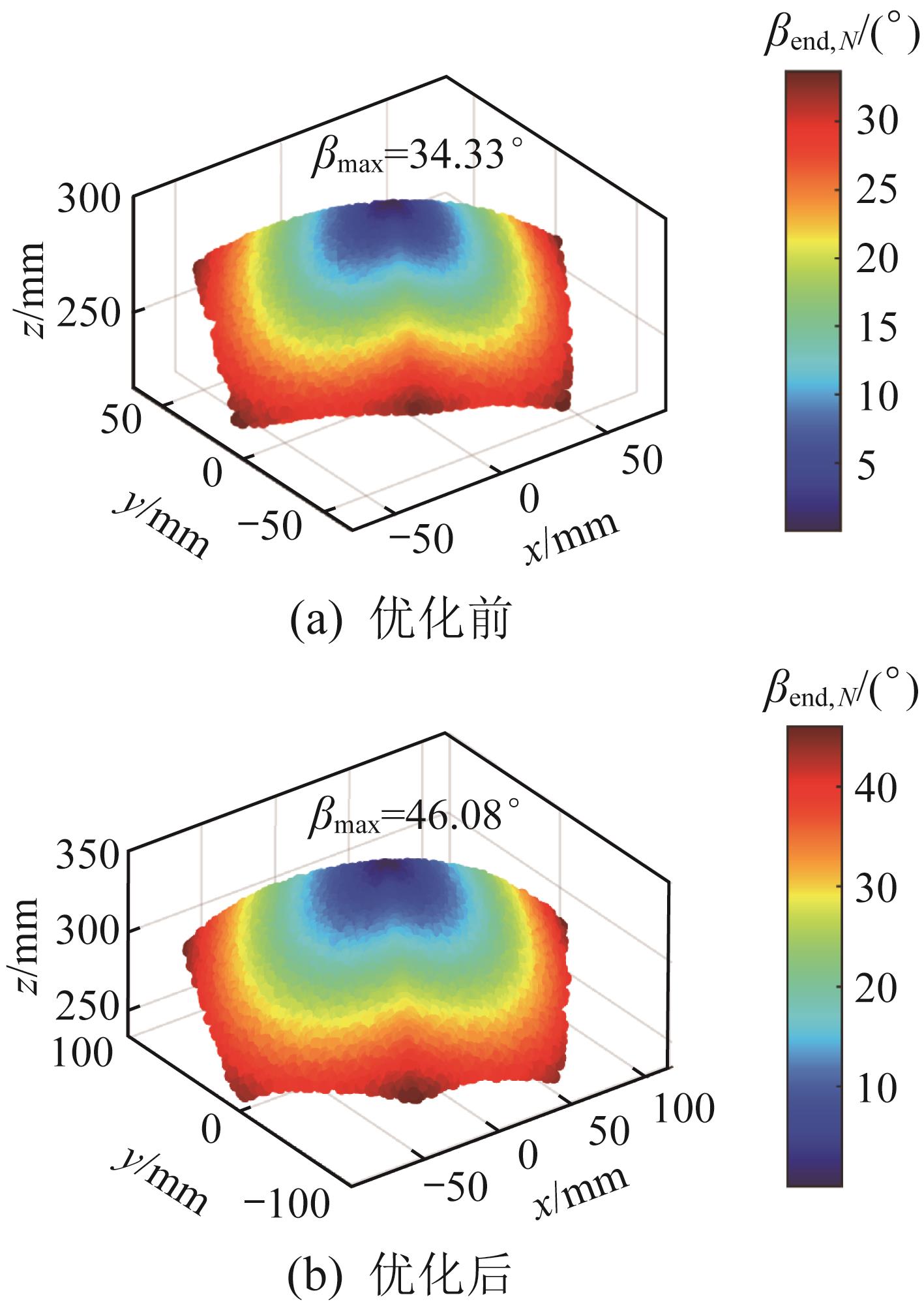 | Fig.10 Comparison of end posture angle of hybrid mechanism before and after optimization |