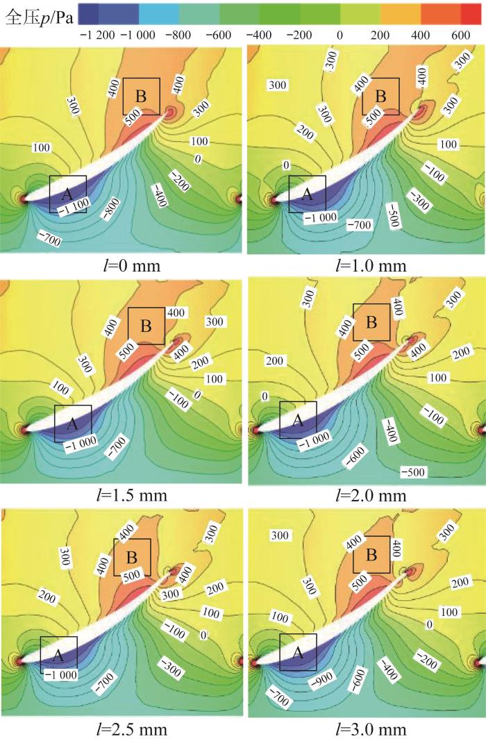 不同厚度 l 下50%叶高处的全压分布云图