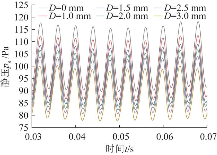 Static pressure pulsation curves at blade tip under different fillet diameters D