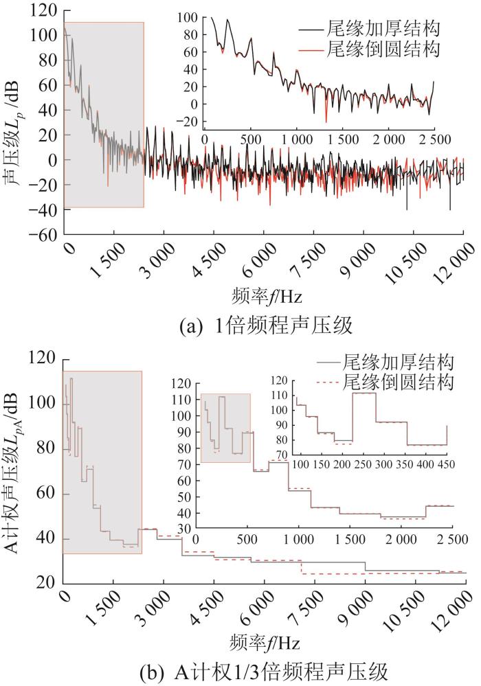3.5 叶片尾缘结构对声学性能的影响