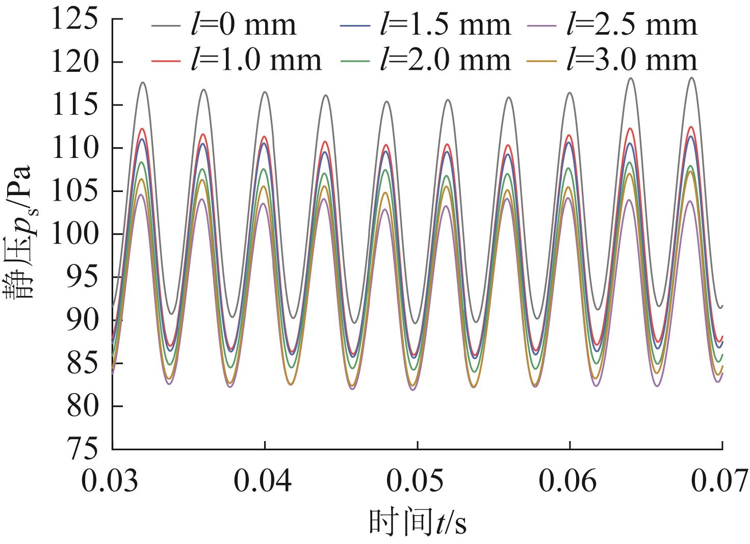 | Fig.9 Static pressure pulsation curves at blade tip under different thicknesses l |