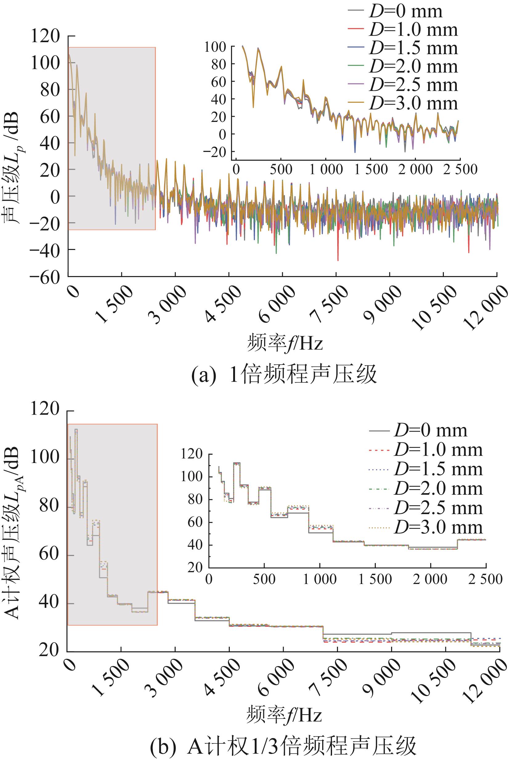 | 图14 不同圆角直径 D 下叶尖处的噪声频谱图 |