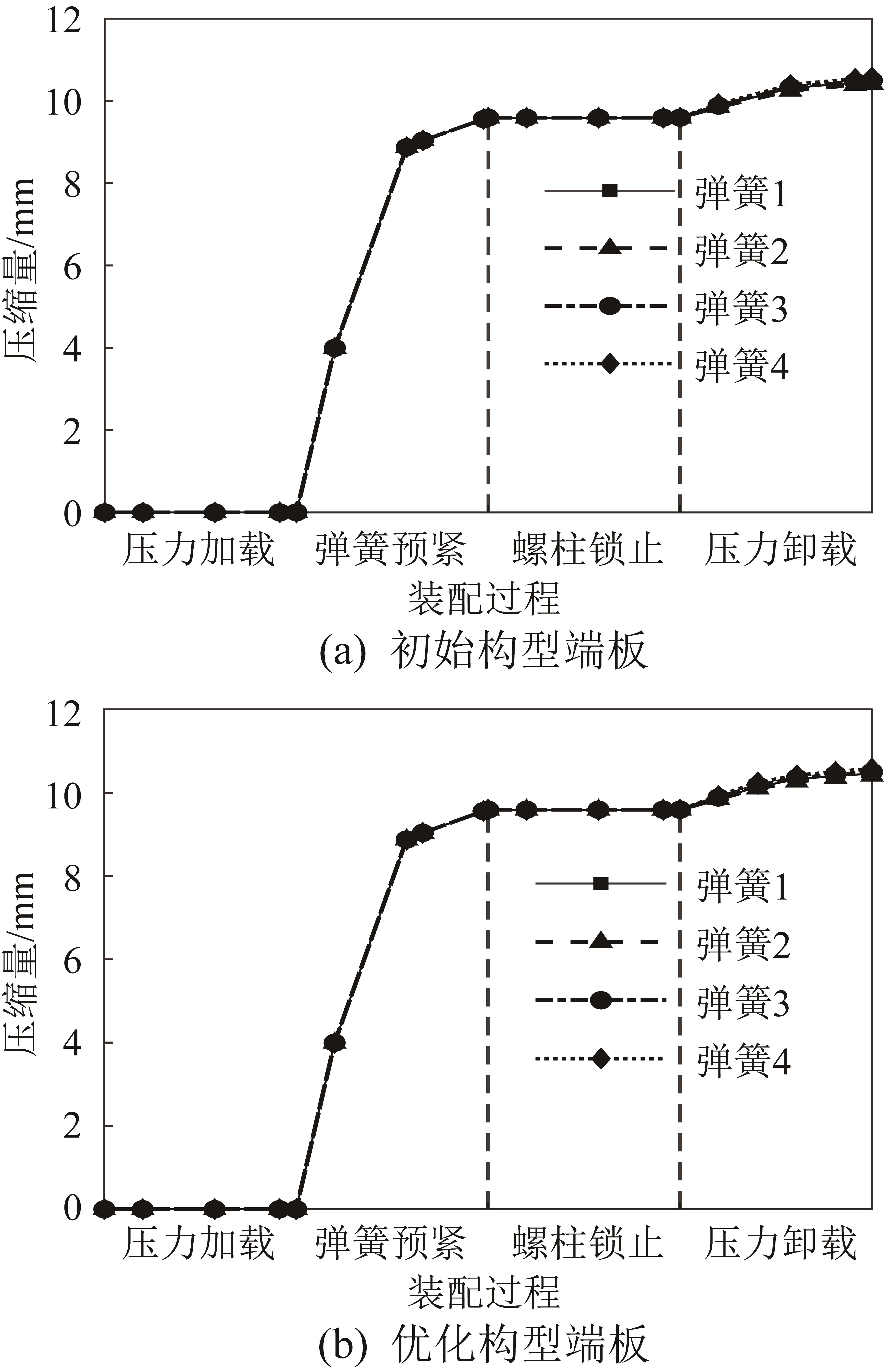 | Fig.12 Variation curves of spring compression of end plates with different configurations |