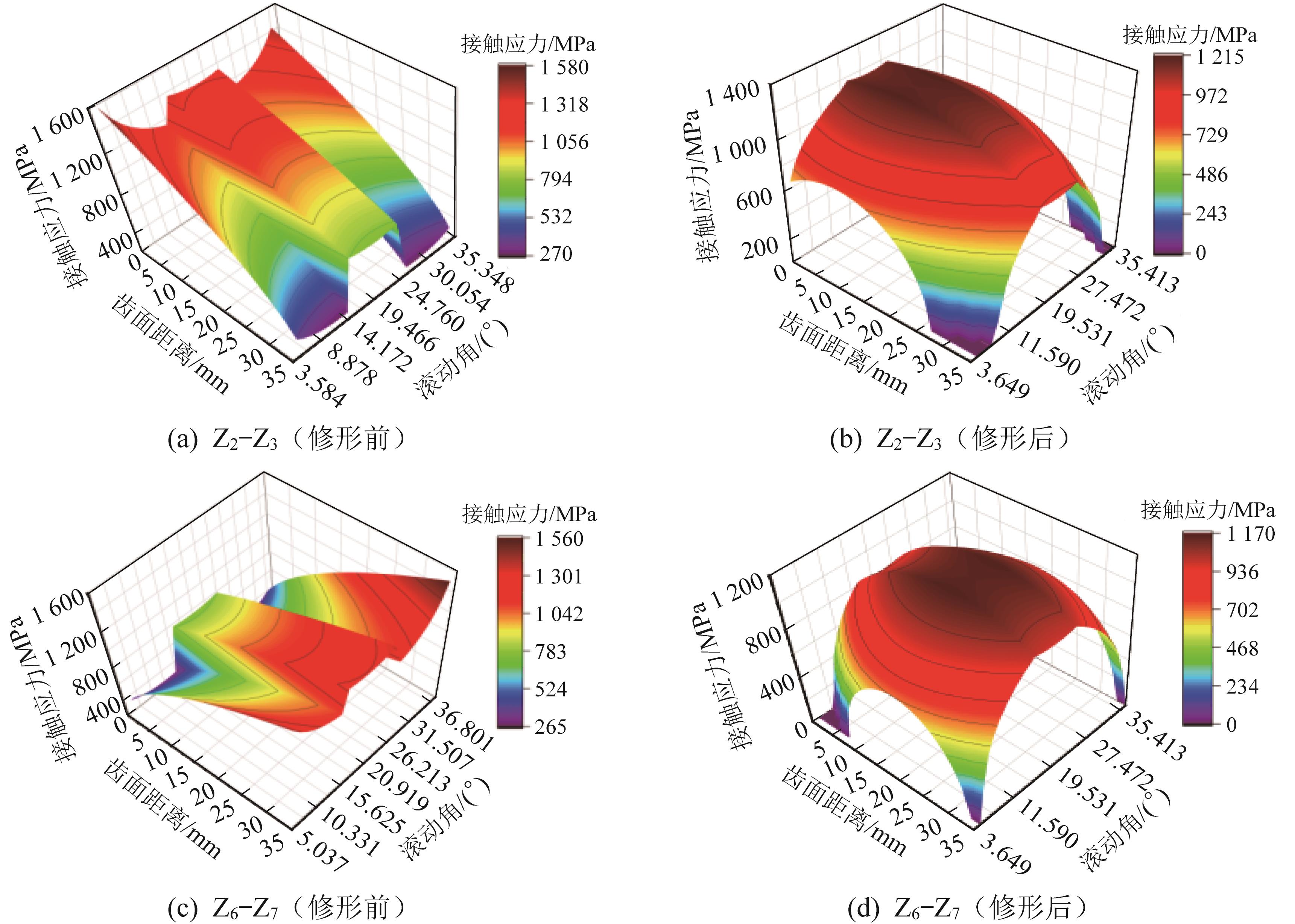 | 图12 Z3/Z6 与中间托辊啮合处的接触应力分布 |