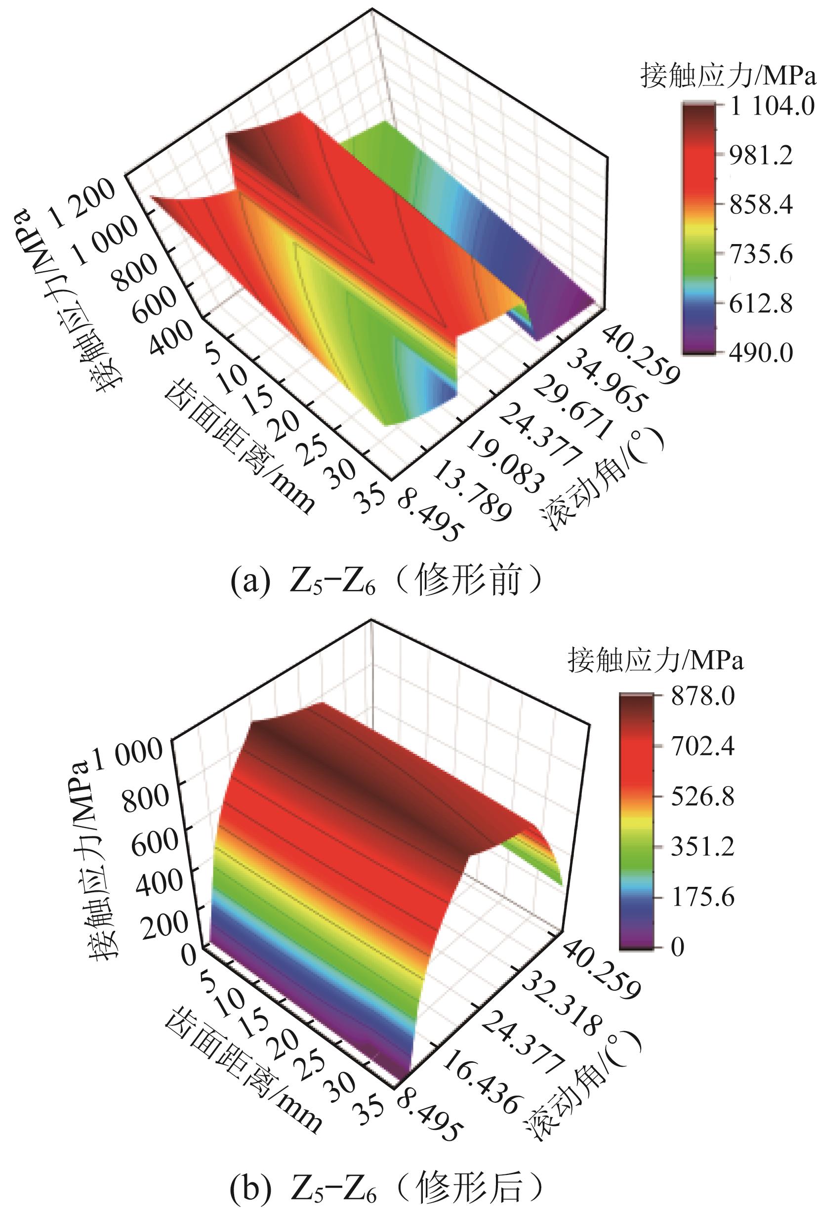 | 图13 Z6 与上托辊啮合处的接触应力分布 |
