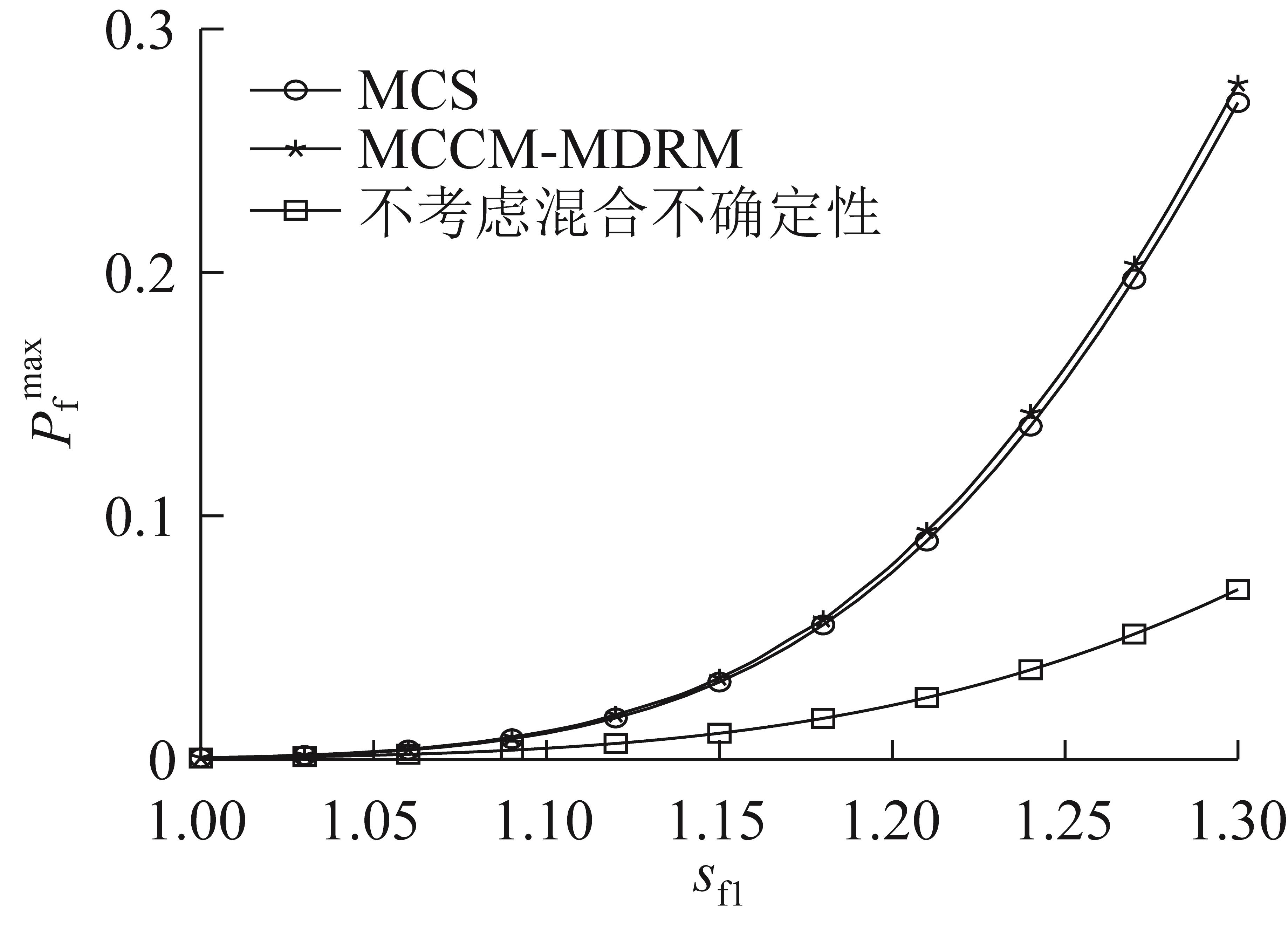 | 图5 行星轮齿面接触疲劳最大失效概率随安全系数的变化曲线 |