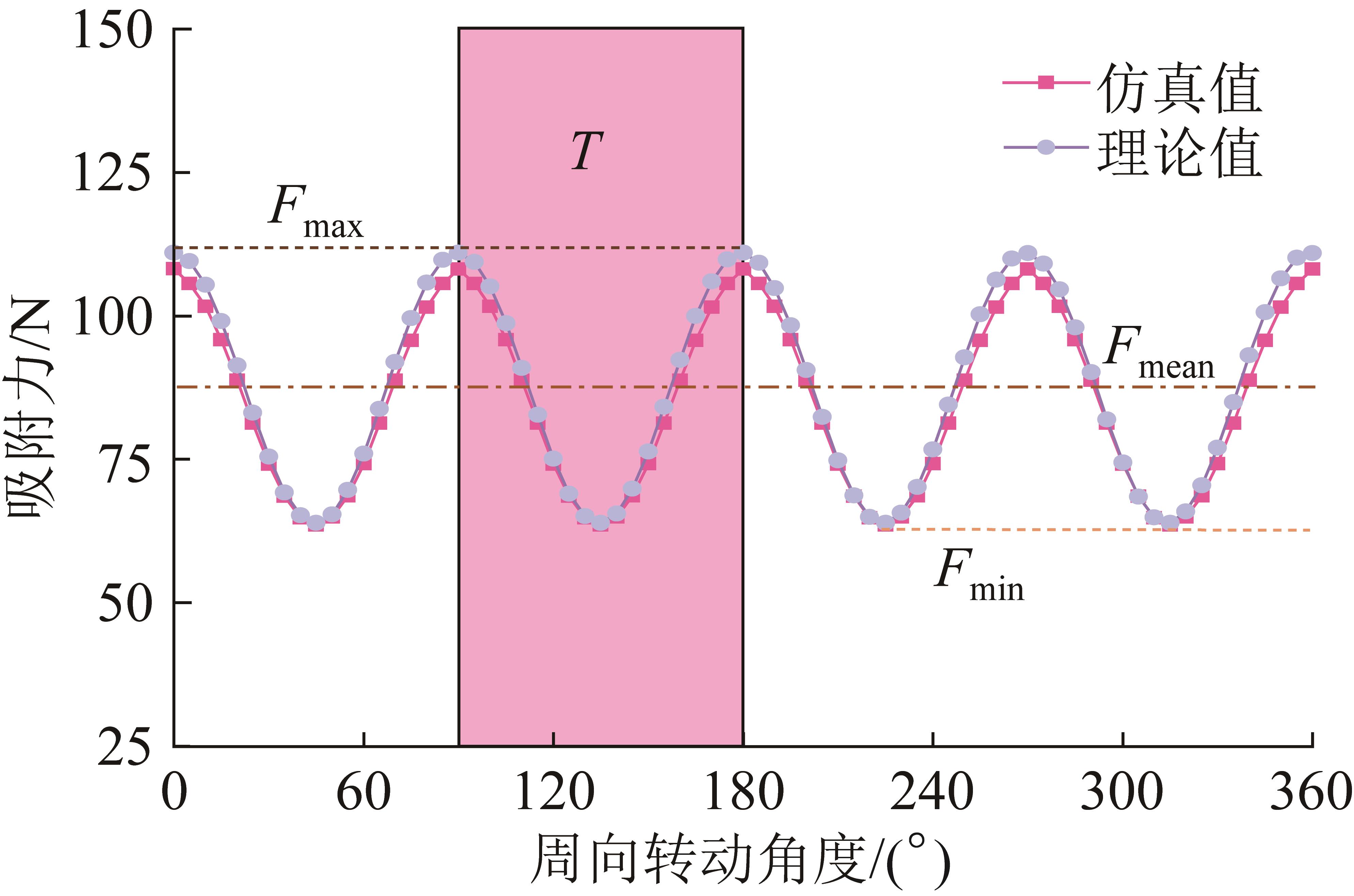 | 图7 单侧Halbach永磁轮周向转动过程中的吸附力变化曲线 |