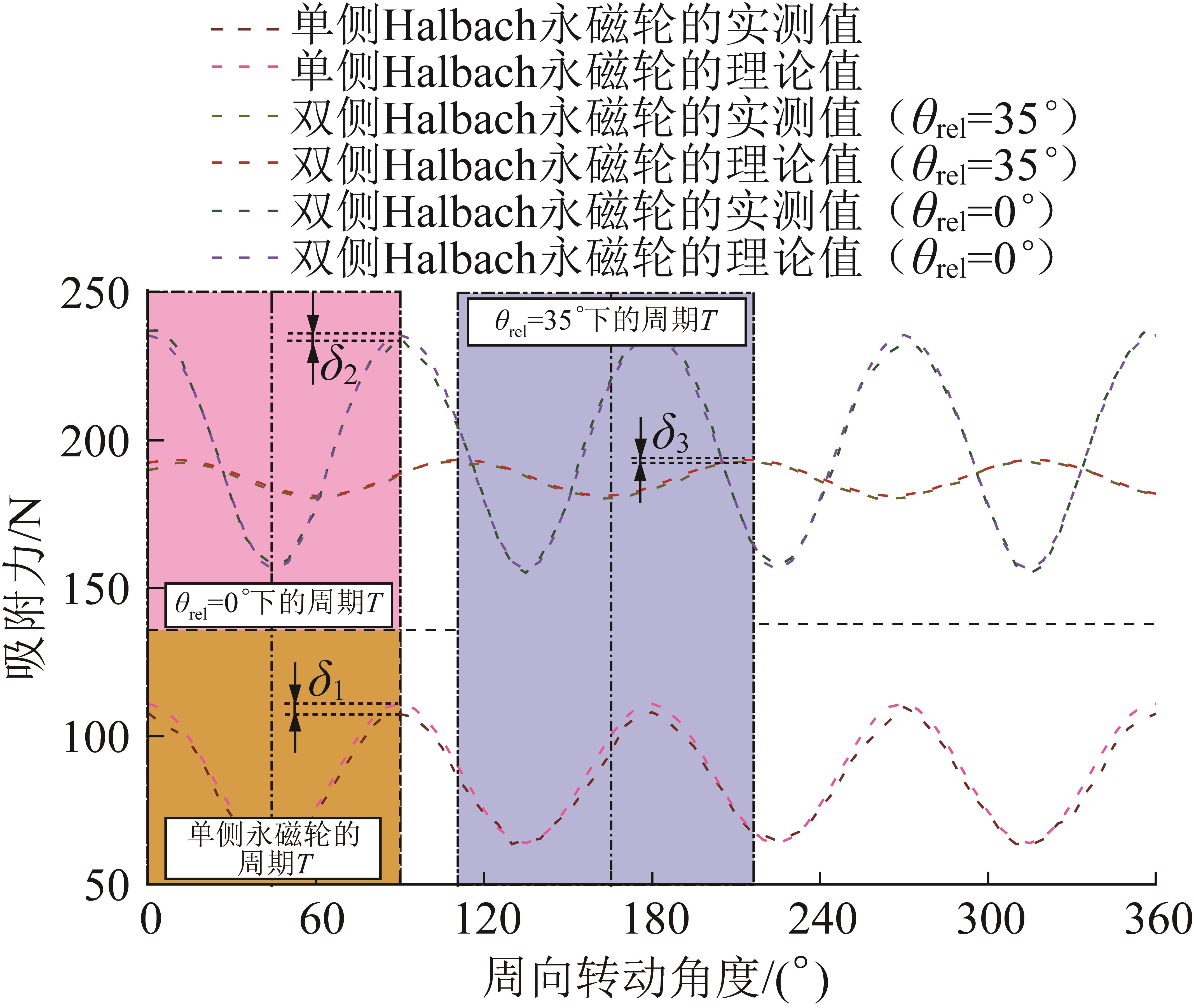 | 图11 Halbach永磁轮周向转动过程中的吸附力对比 |