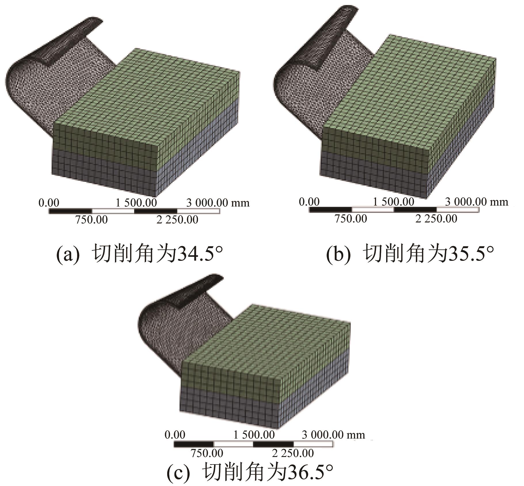 | 图5 不同切削角下的清雪铲除雪仿真模型 |