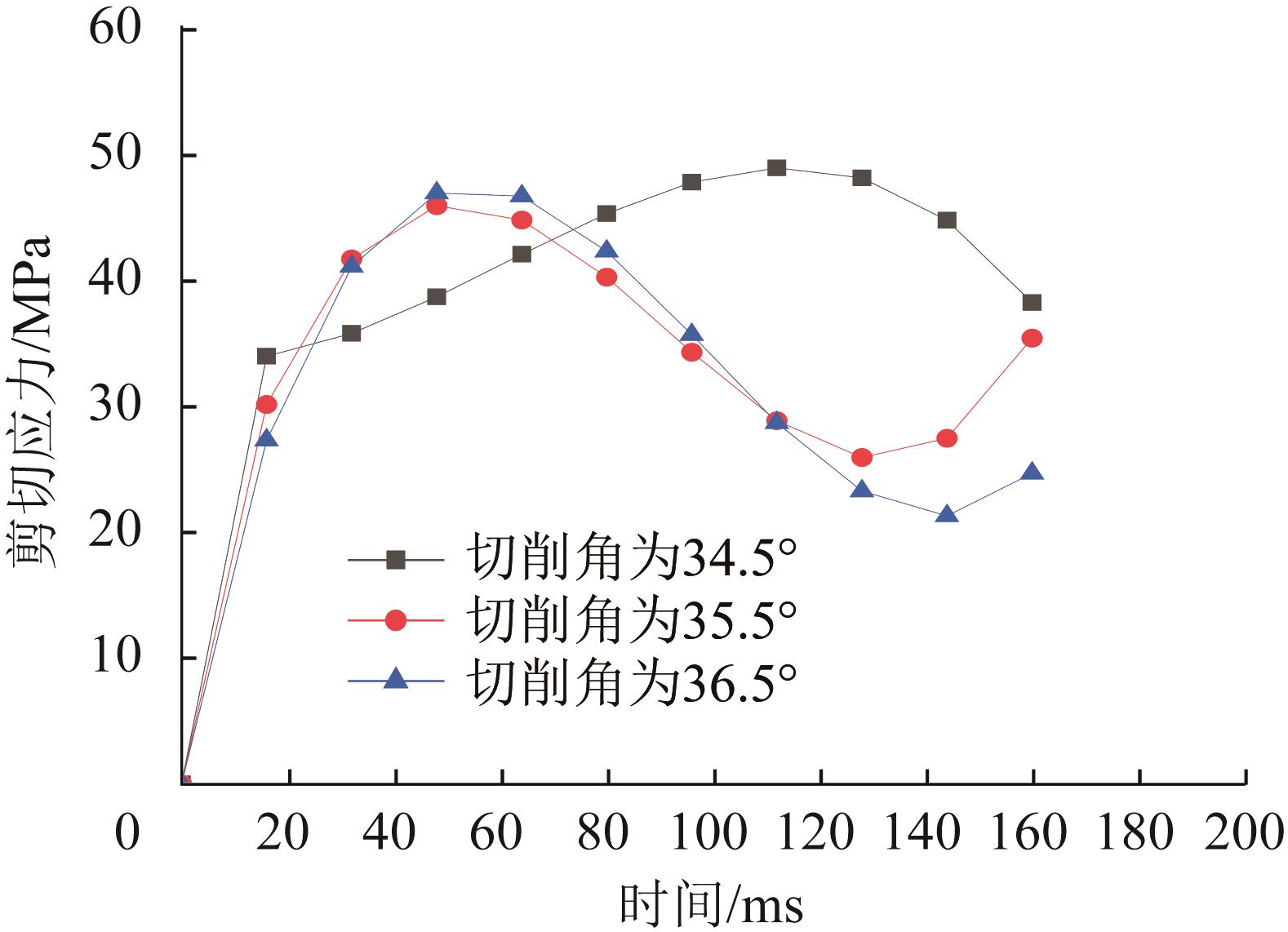 | 图8 不同切削角下积雪的剪切应力曲线 |
